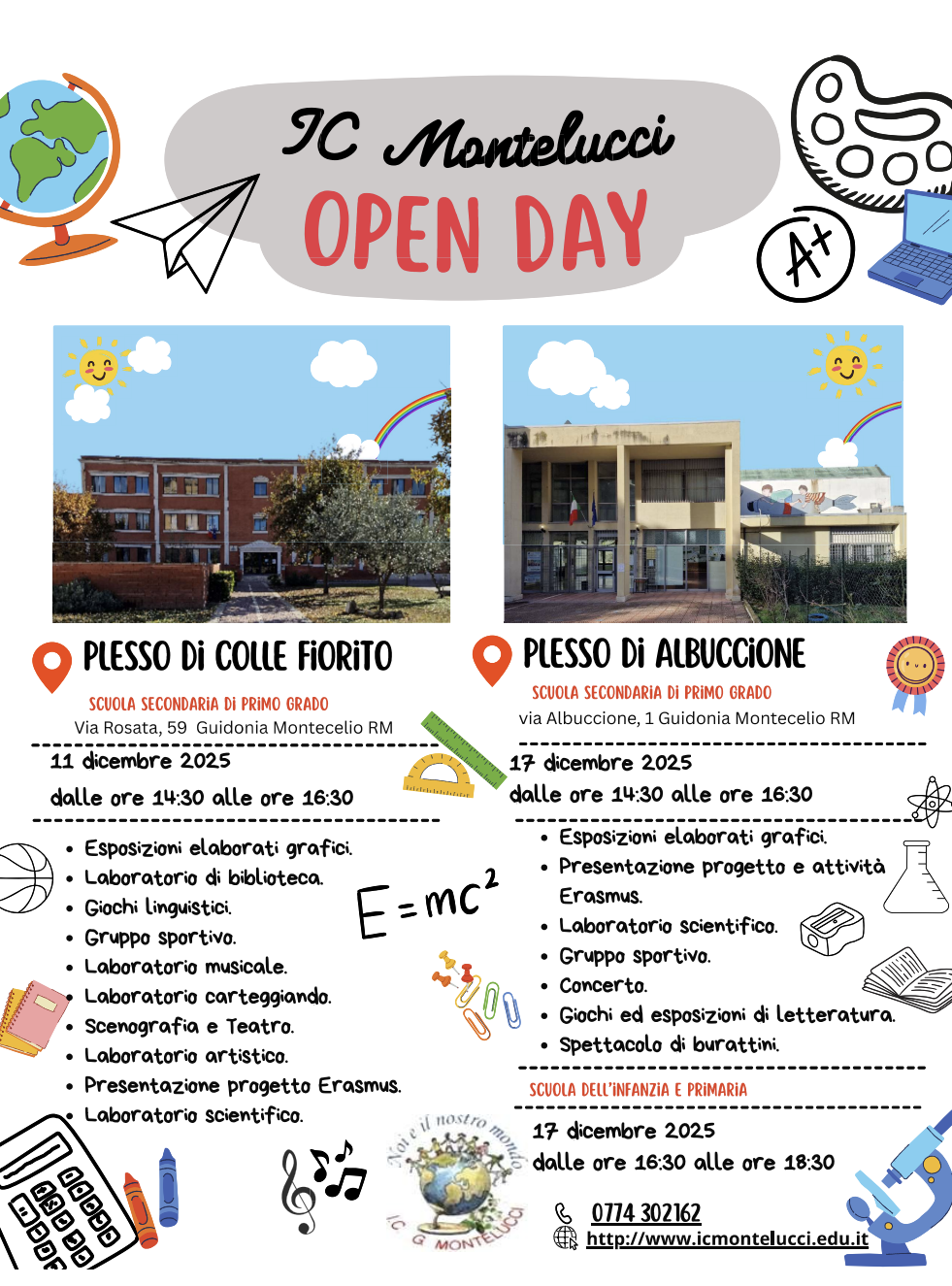 Open Day della scuola dell'Infanzia e Primaria della sede di Albuccione e di tutta la scuola Secondaria dell'I.C. Montelucci.